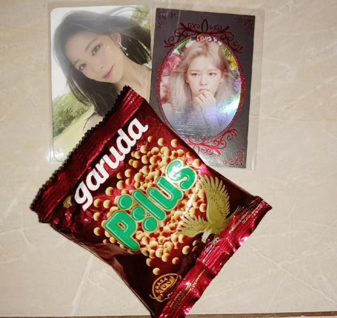 "Selalu happy kalo jajan di chona masing2 seller bener2 lintas gg trus freebies dari pukis dapet triples, stayc dapet lightsum, klo pilus ril dari kak jun wkwk thank u juna udh jemput wl ku yg rare ini! see u on the next jajan 😆🤍"